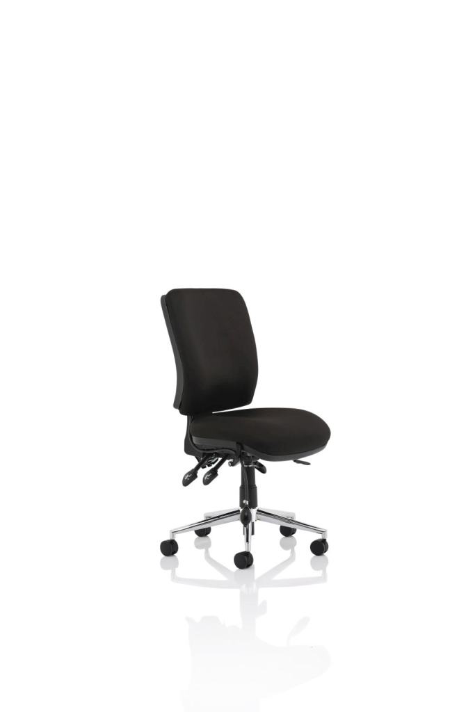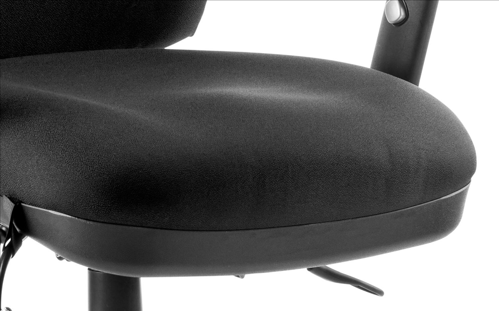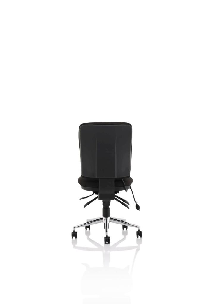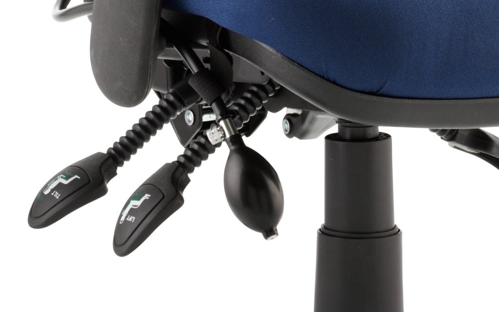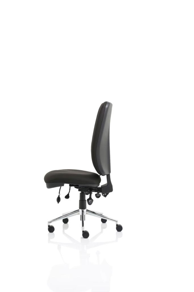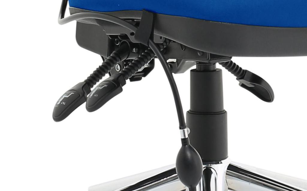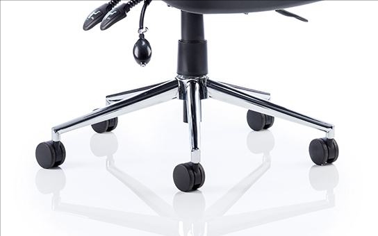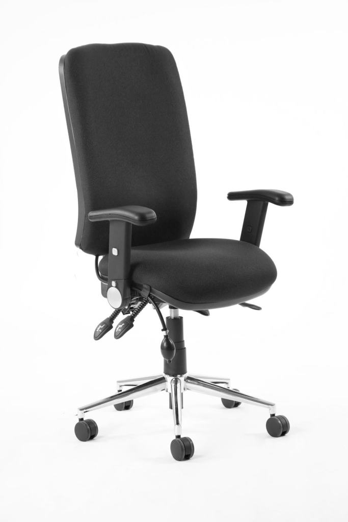 • Posture chair – approved by a UK Chiropractic Doctor • Height adjustable ratchet backrest with pump up lumbar support • Contoured foam seat and back for extra comfort • Triple lever independent mechanism • Independent seat and backrest tilt angle adjustment • Seat slide • Polished chrome 5 star base • Tested to BS 5459-2 • Gas lift tested up to: 150 kg • Usage: Task 24/7
