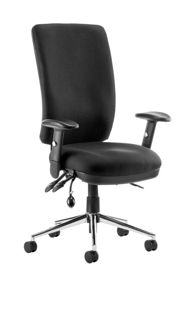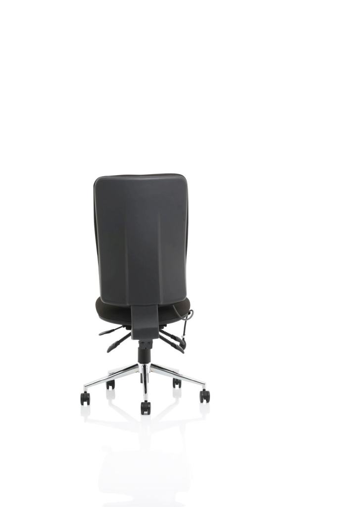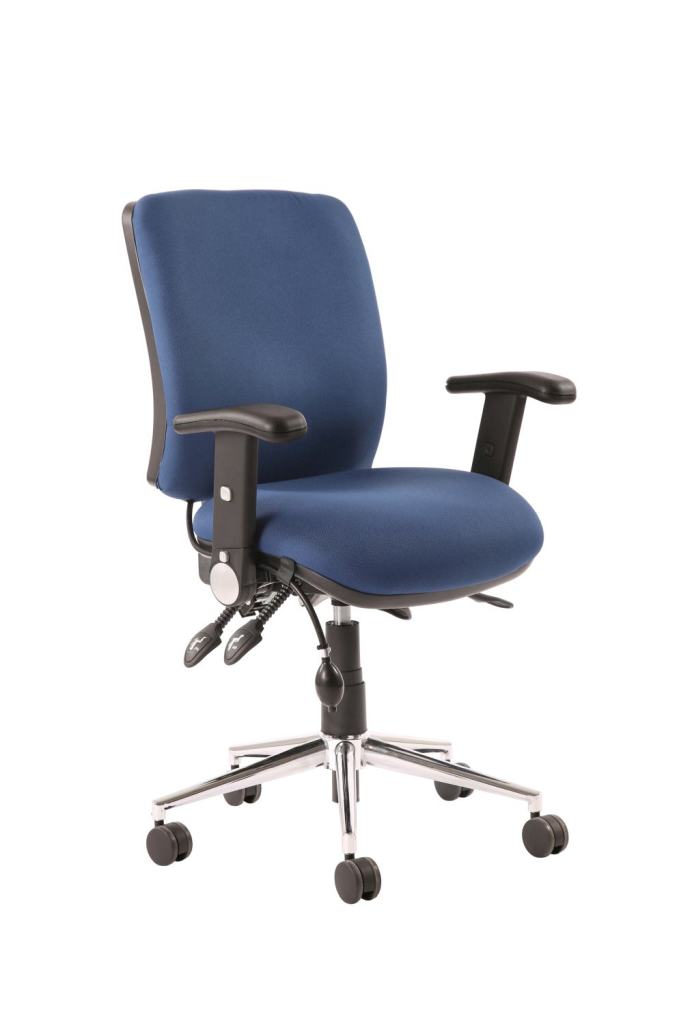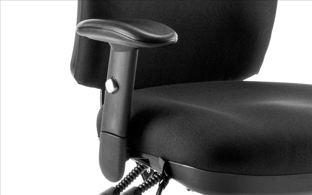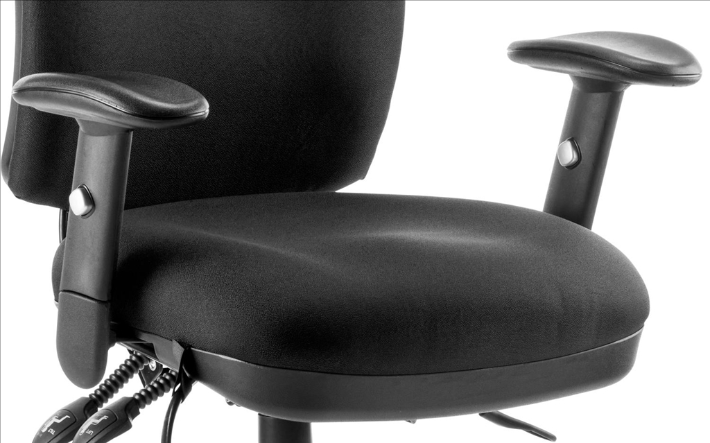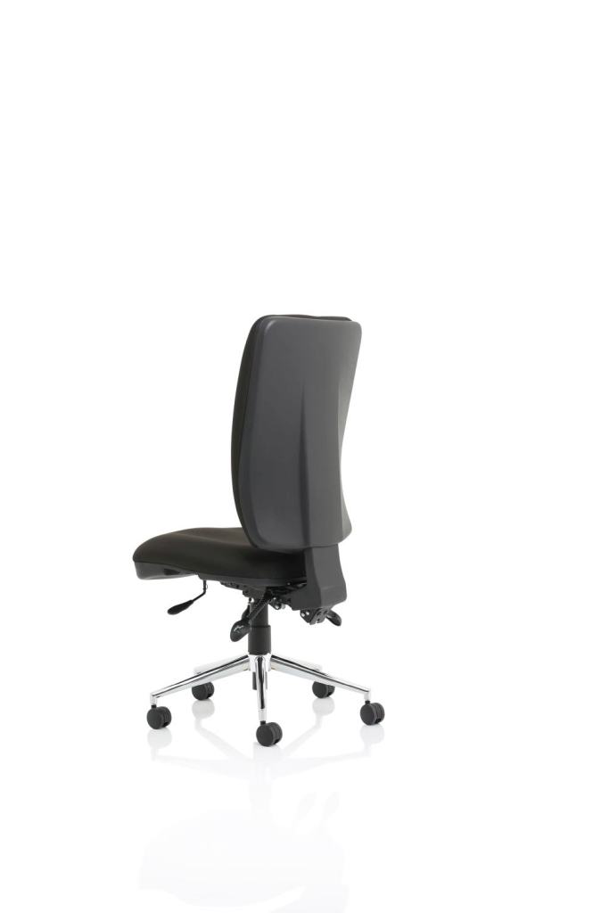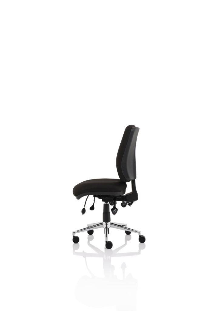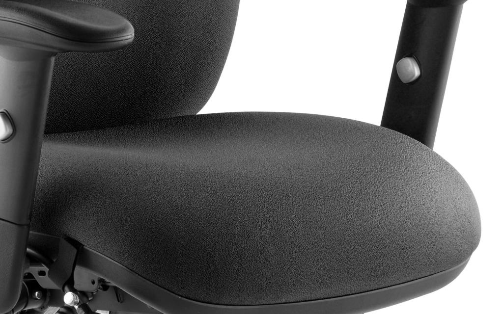 • Posture chair – approved by a UK Chiropractic Doctor • Height adjustable ratchet backrest with pump up lumbar support • Contoured foam seat and back for extra comfort • Triple lever independent mechanism • Independent seat and backrest tilt angle adjustment • Seat slide • Polished chrome 5 star base • Tested to BS 5459-2 • Gas lift tested up to: 150 kg • Usage: Task 24/7