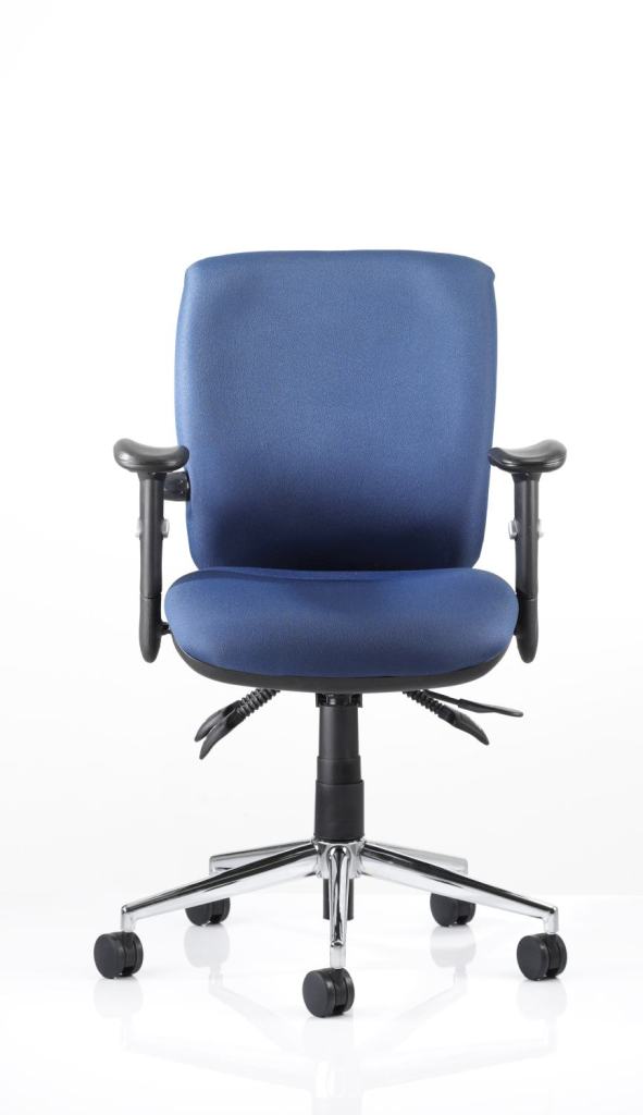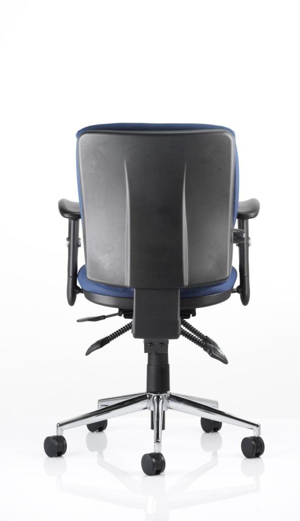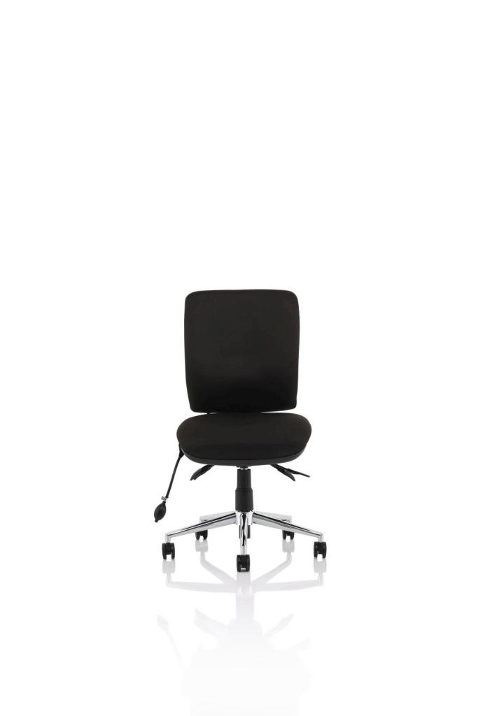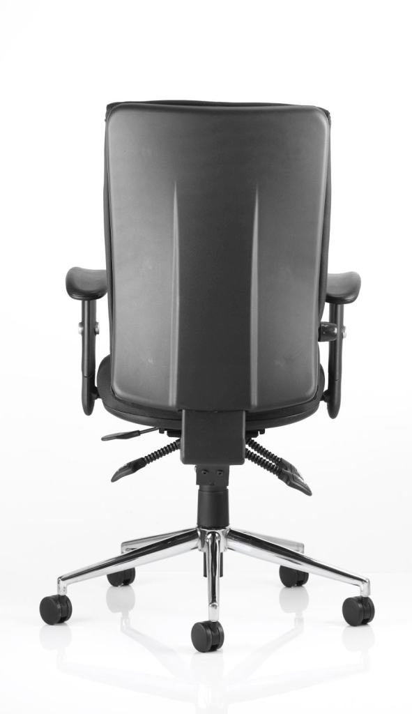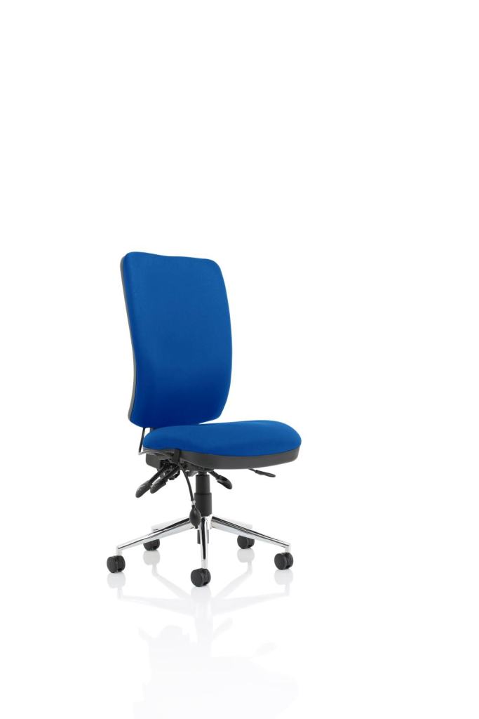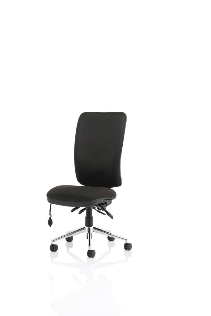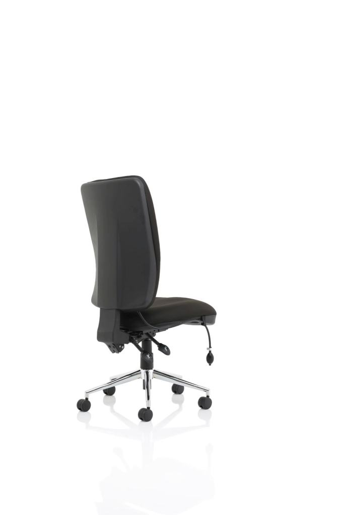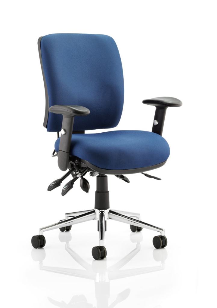 • Posture chair – approved by a UK Chiropractic Doctor • Height adjustable ratchet backrest with pump up lumbar support • Contoured foam seat and back for extra comfort • Triple lever independent mechanism • Independent seat and backrest tilt angle adjustment • Seat slide • Polished chrome 5 star base • Tested to BS 5459-2 • Gas lift tested up to: 150 kg • Usage: Task 24/7